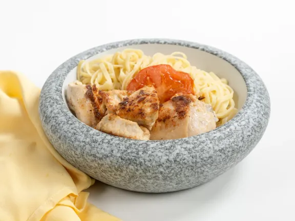 Подавайте готову курку з відвареними макаронами або будь-яким іншим гарніром, який вам до смаку, насолоджуючись кожним шматочком цієї ароматної страви.